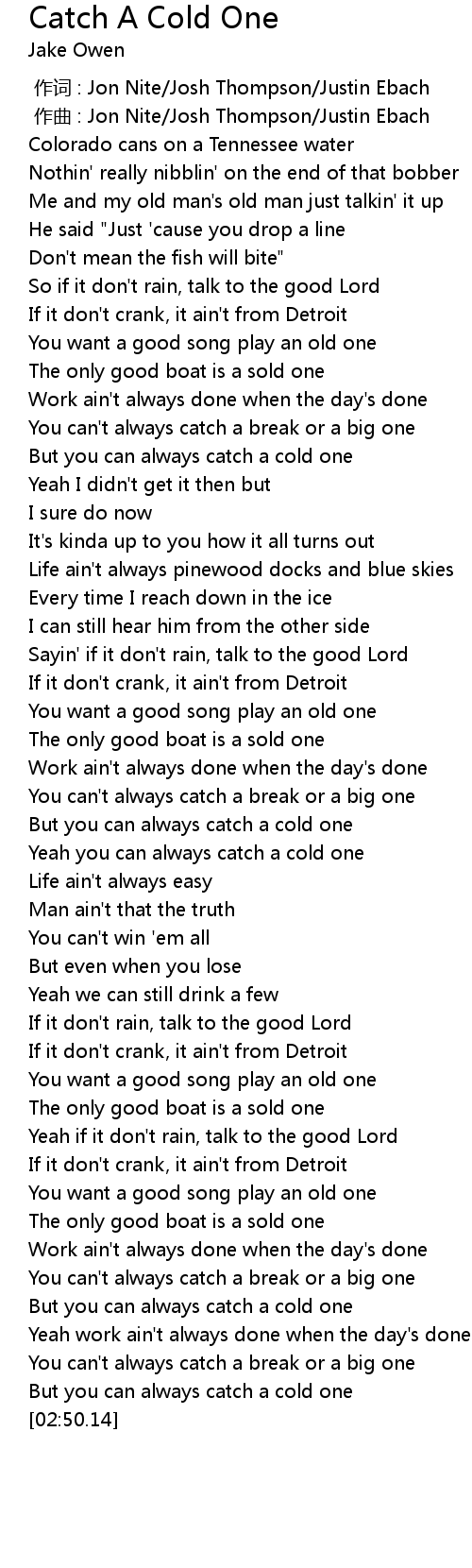 | [00:41.42] | But you can always catch a cold one |