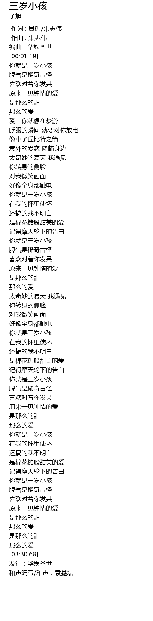 | [02:59.64] | nǐ jiù shì sān suì xiǎo hái |