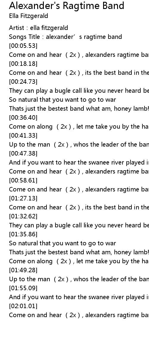 | [00:53.50] | Come on and hear 2x, alexanders ragtime band! |