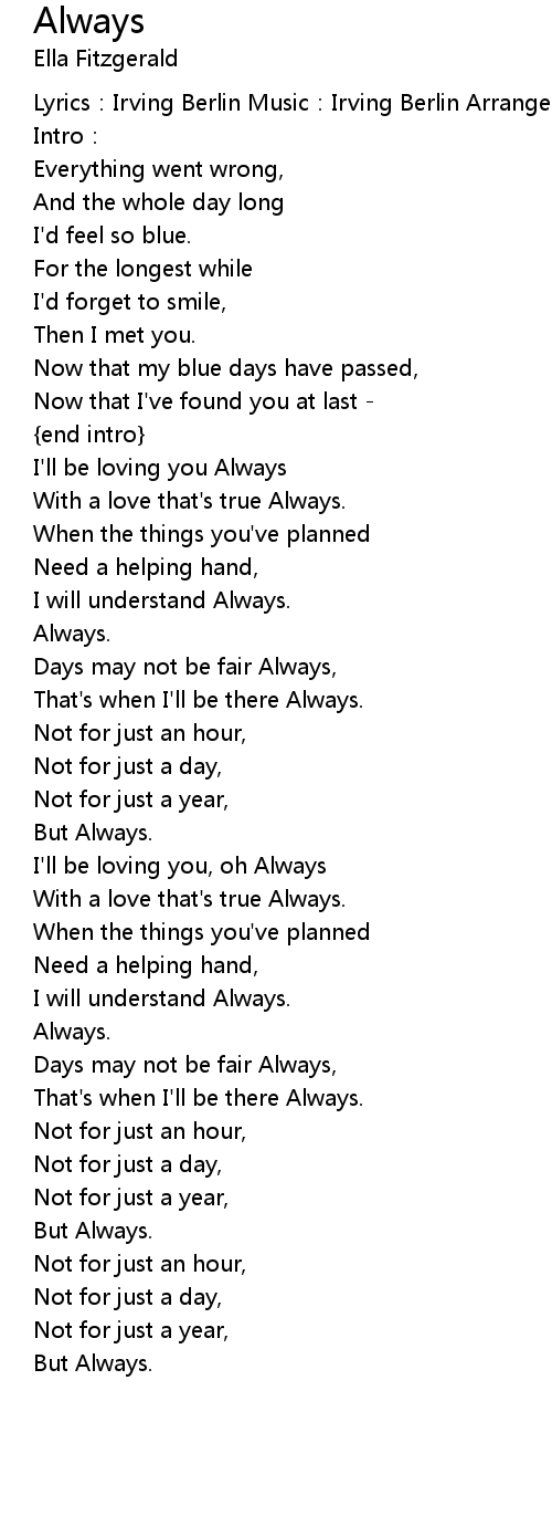 | With a love that' s true Always. | |