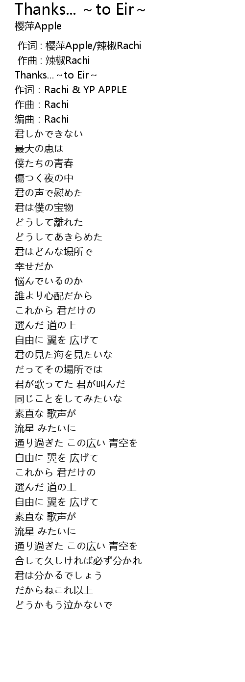 | [00:01.300] | 作词:Rachi & YP APPLE |