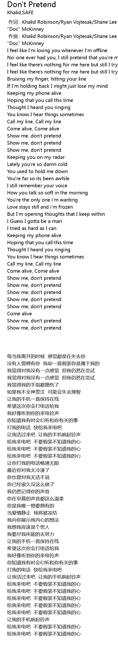 | [00:01.000] | zuo qu : Khalid Robinson Ryan Vojtesak Shane Lee Lindstrom Martin " Doc" McKinney |