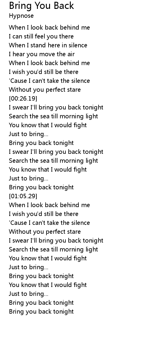 Bring you back tonight |