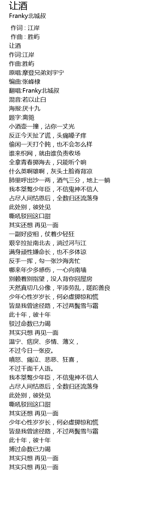| [00:08.02] | 翻唱:Franky北城叔 |