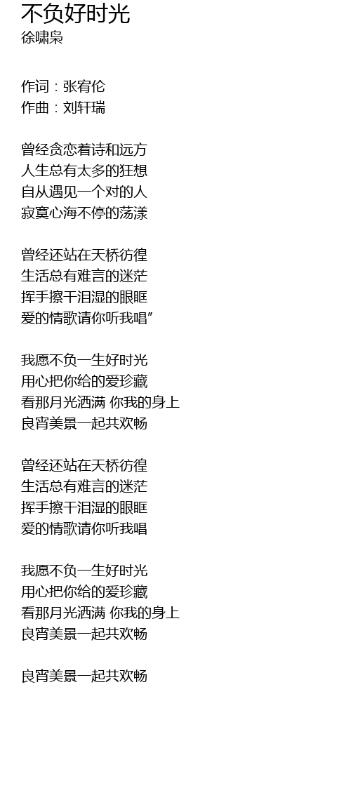 | wǒ yuàn bù fù yī shēng hǎo shí guāng | |