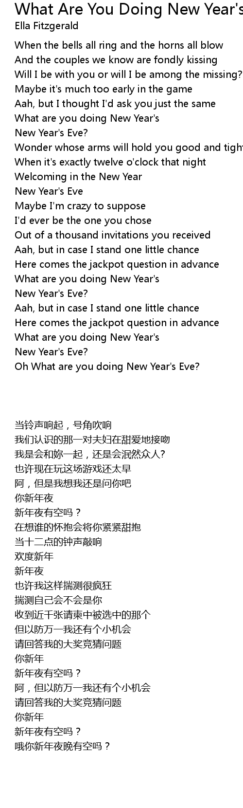 Oh What are you doing New Year's Eve? |
