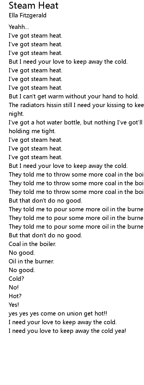 The radiators hissin still I need your kissing to keep me from freezing each night. |