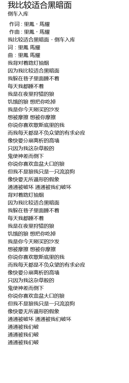 | [00:00.27] | 我比较适合黑暗面 - 倒车入库 |