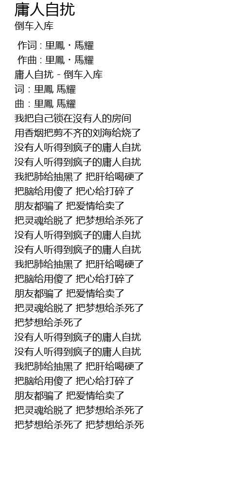 | [00:00.23] | 庸人自扰 - 倒车入库 |