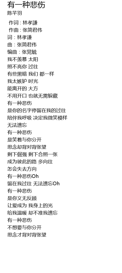 | [02:41.060] | yǒu yī zhǒng bēi shāng Oh |