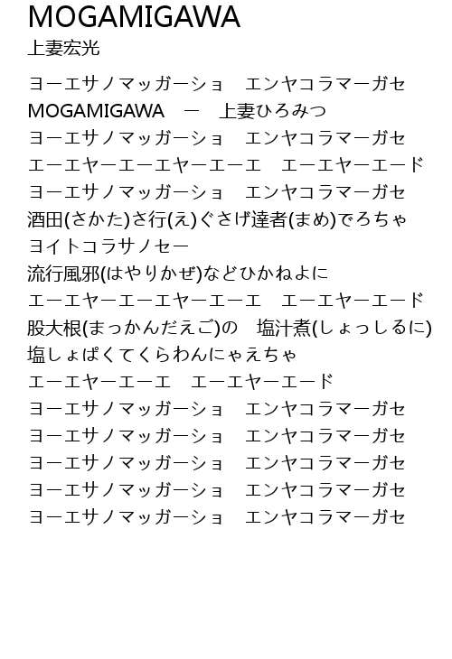 | [00:15.890] | MOGAMIGAWA ー 上妻ひろみつ |