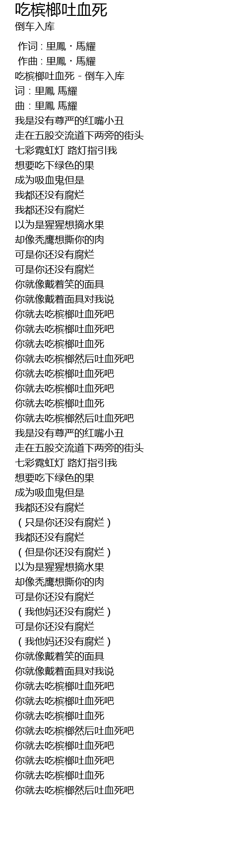 | [01:47.10] | 你就去吃槟榔吐血死 |