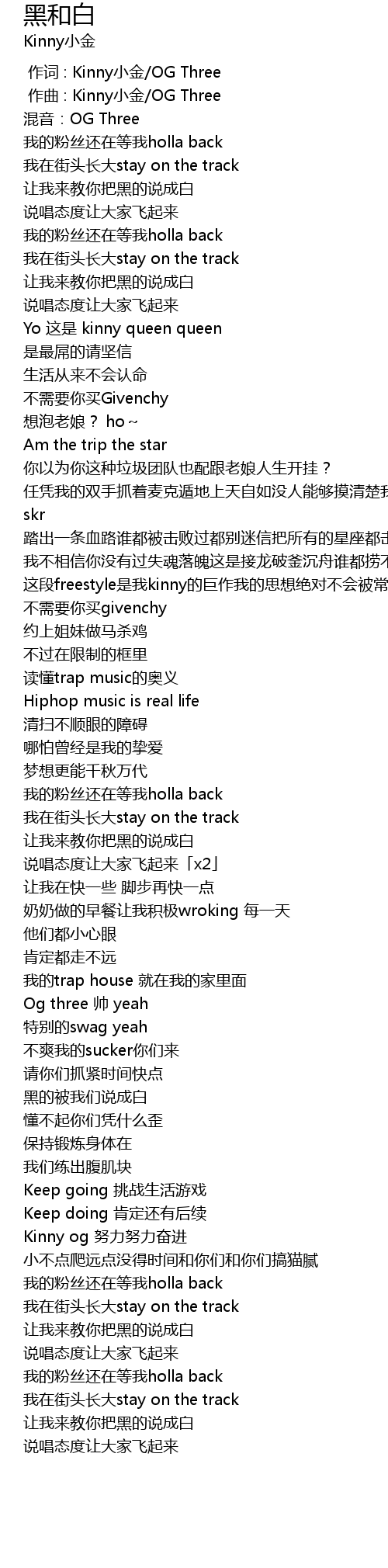 | [00:00.000] | 作词 : Kinny小金/OG Three |