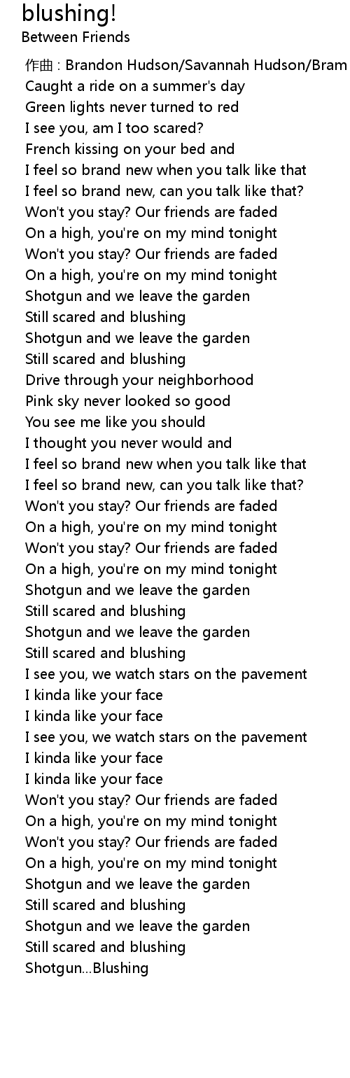 | [00:46.150] | Won' t you stay? Our friends are faded |