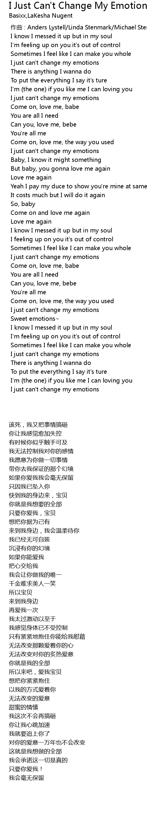 | [00:26.467] | I just can' t change my emotions |