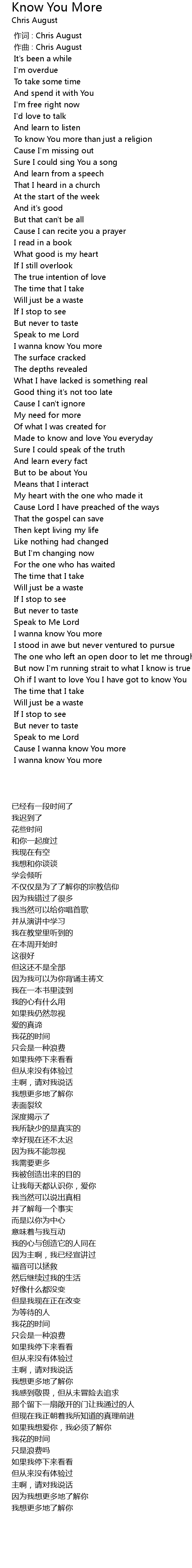 | [03:07.370] | Oh if I want to love You I have got to know You |