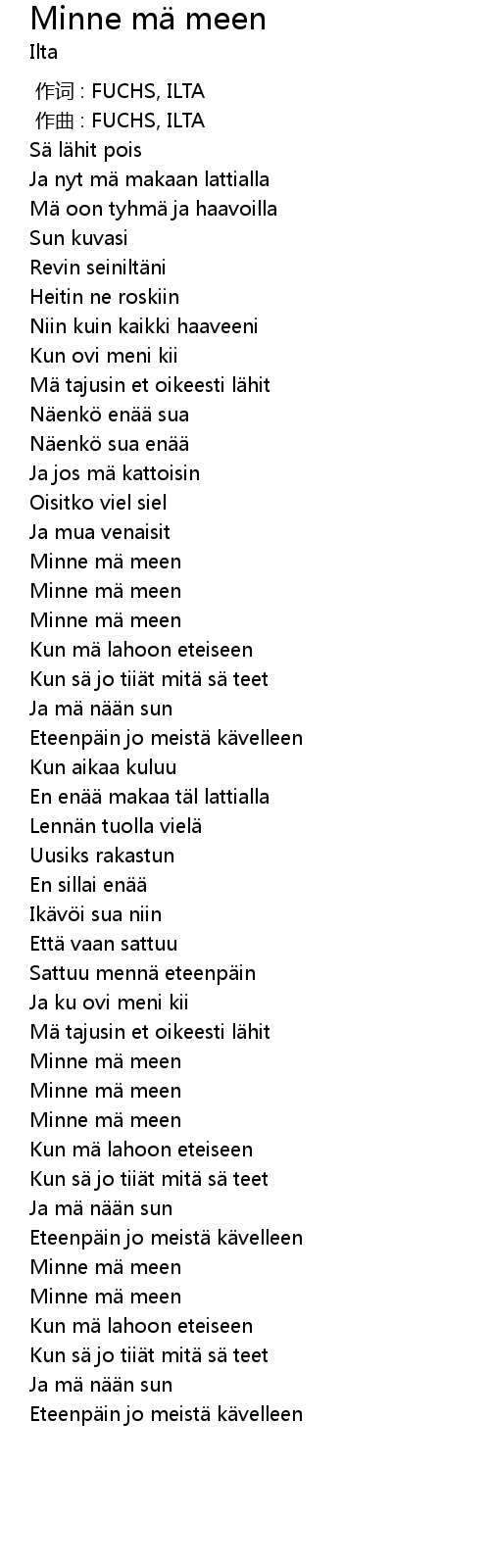 | [00:00.000] | zuò cí : FUCHS, ILTA |