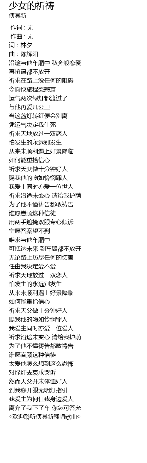 | [03:43.70] | ◇欢迎聆听傅其新翻唱歌曲◇ |
