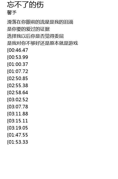 | [03:57.13][01:47.55] | 永恒的伤........ |