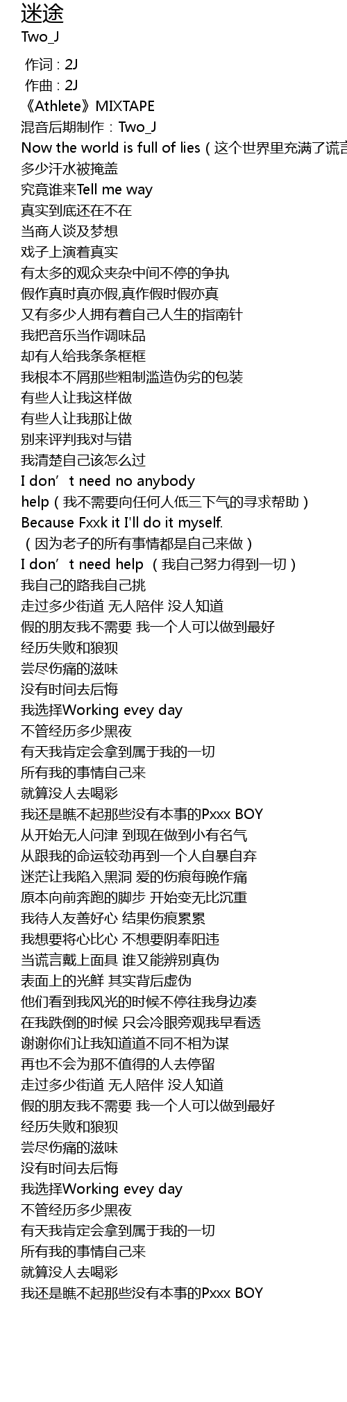 | [00:00.000] | 作词 : 2J |