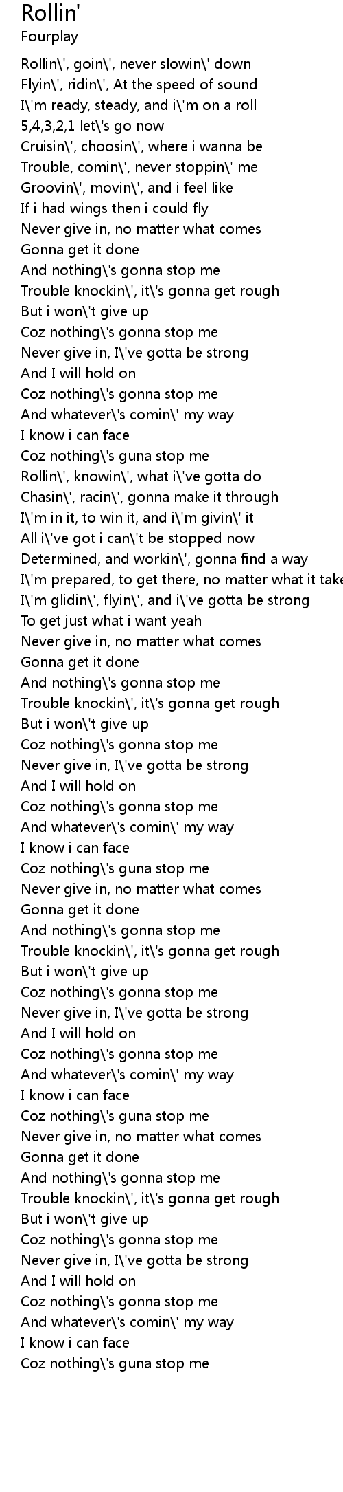 | Rollin\', knowin\', what i\'ve gotta do | |