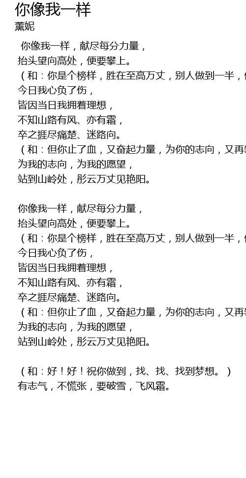 | nǐ xiàng wǒ yí yàng, xiàn jǐn měi fēn lì liàng, | |
