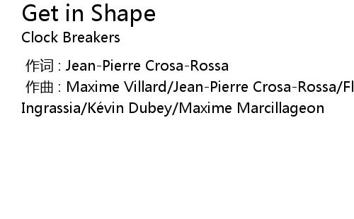 | [00:00.000] | 作曲 : Maxime Villard/Jean-Pierre Crosa-Rossa/Florent Ingrassia/Kévin Dubey/Maxime Marcillageon |