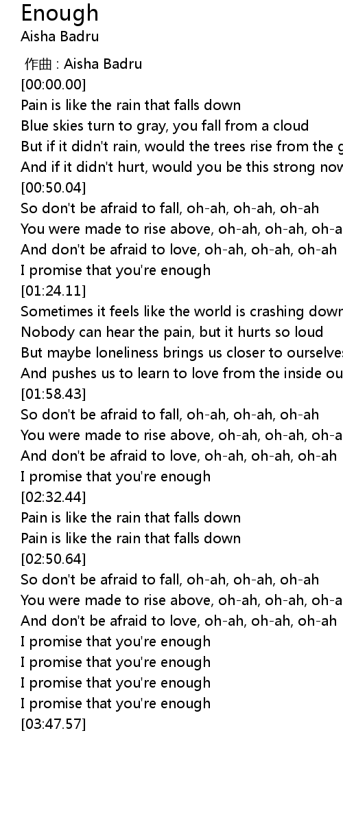 | [01:18.44] | I promise that you're enough |