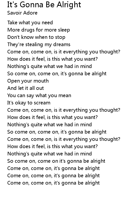 So come on, come on, it's gonna be alright |