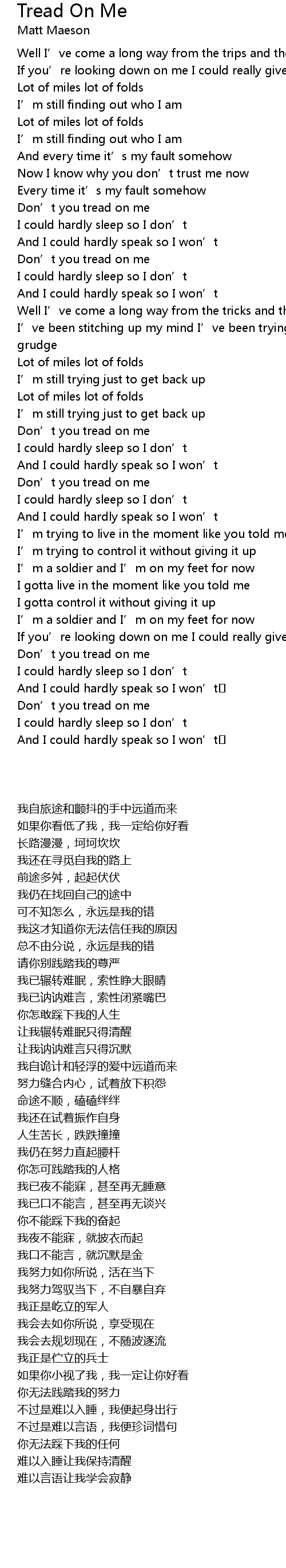 | [02:10.000] | I’m a soldier and I’m on my feet for now |