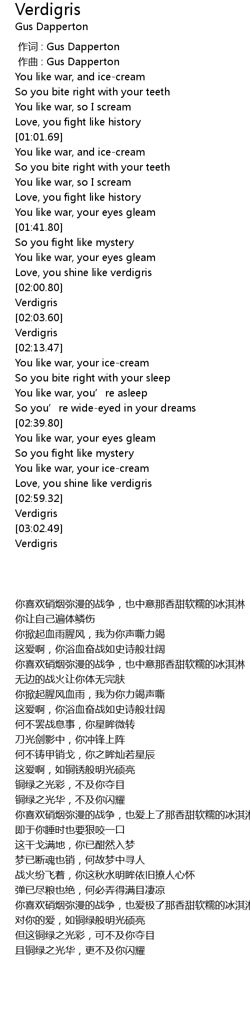 | [02:59.93] | Verdigris |