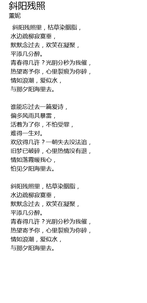 | xié yáng cán zhào lǐ, kū cǎo rǎn yān zhī, | |