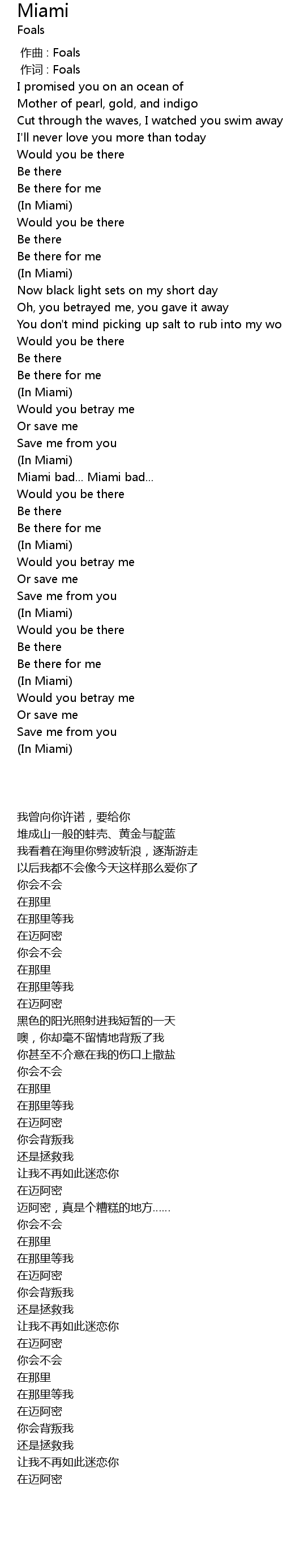 | [00:00.00] | 作曲 : Foals |