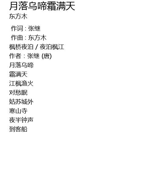 | [00:05.00] | 枫桥夜泊 / 夜泊枫江 |