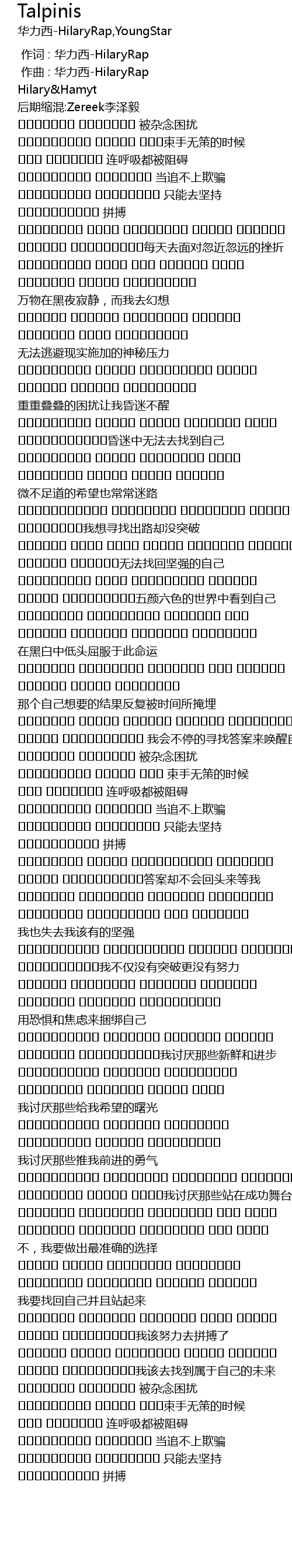 | [00:00.000] | 作词 : 华力西-HilaryRap |