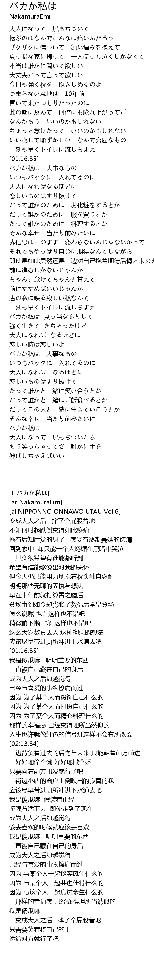 | [02:41.38] | バカか私は 真っ当なふりして |