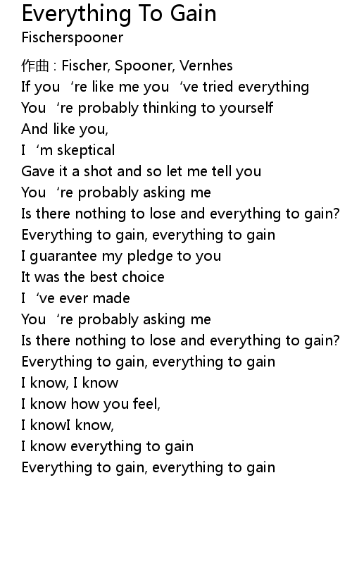 | I know everything to gain | |