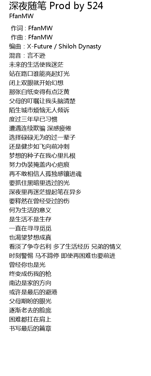 | [00:01.499] | 编曲:X-Future / Shiloh Dynasty |