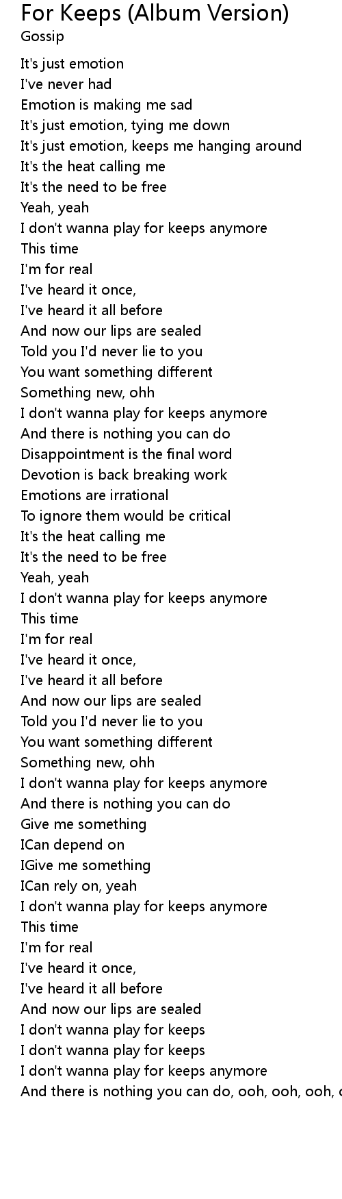 I don't wanna play for keeps |