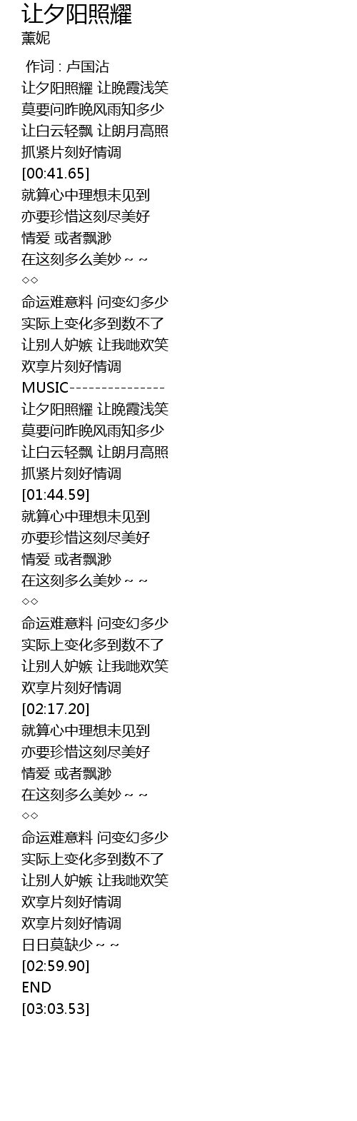 | [01:29.87] | ràng xī yáng zhào yào ràng wǎn xiá qiǎn xiào |