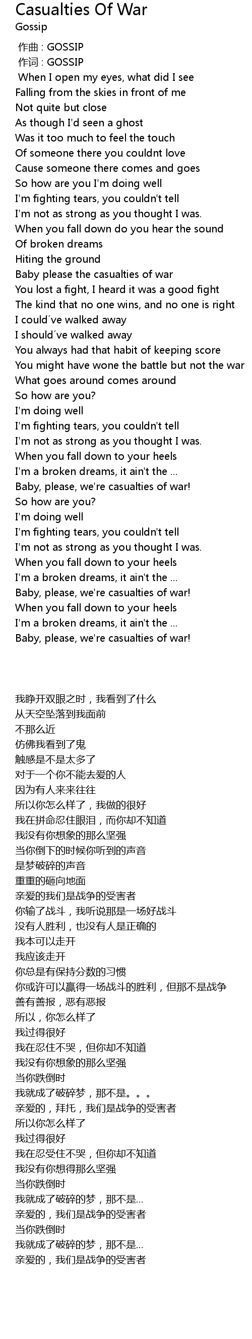 | [02:36.79] | Baby, please, we' re casualties of war! |