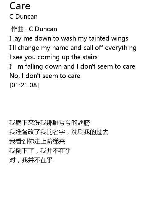 | [00:55.18] | I’m falling down and I don't seem to care |