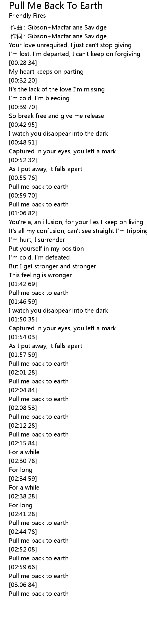 | [00:01.00] | 作词 : Gibson+Macfarlane Savidge |