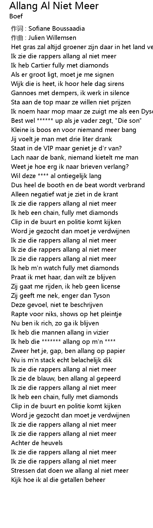 | [01:46.212] | Ik zie die rappers allang al niet meer |