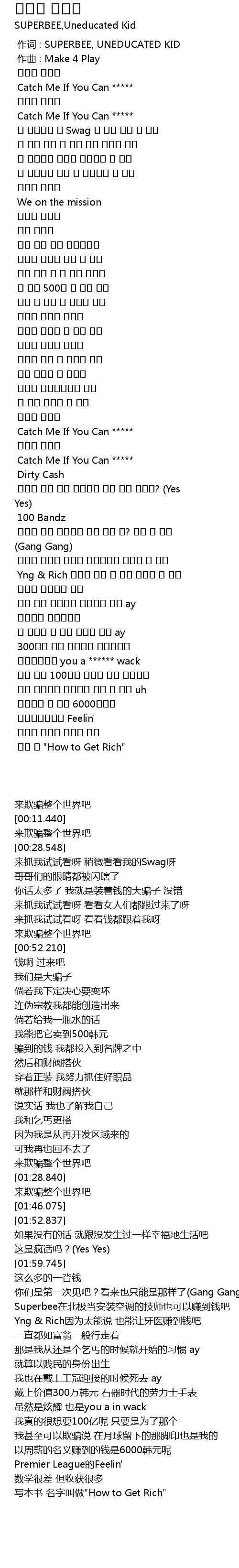| [00:00.000] | 作词 : SUPERBEE, UNEDUCATED KID |