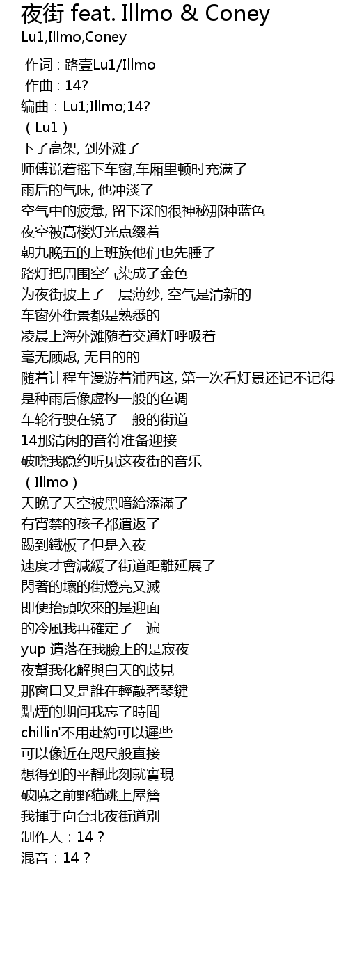 | [00:00.000] | 作词 : 路壹Lu1/Illmo |