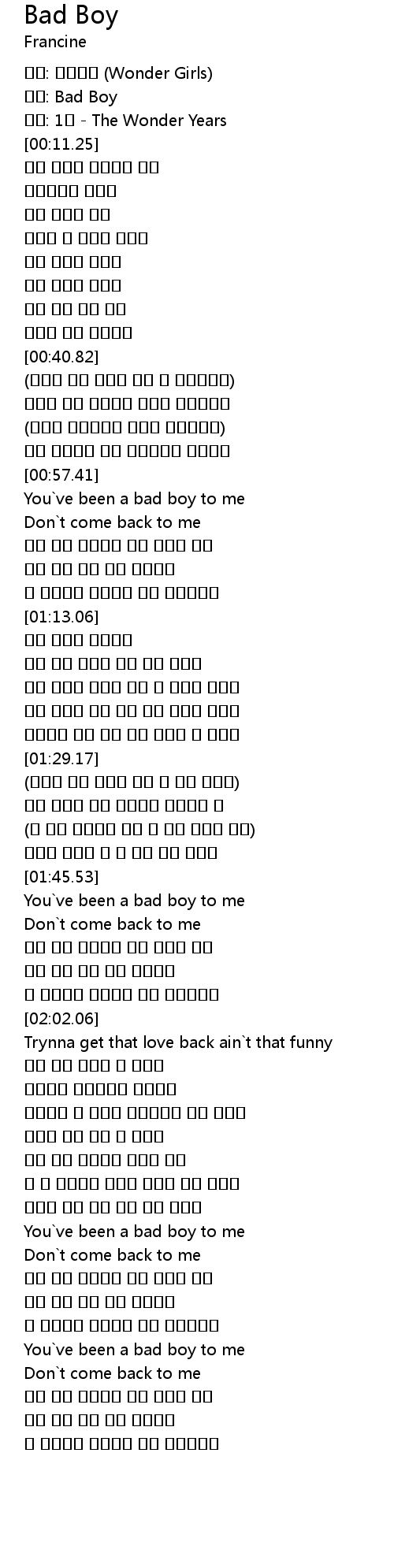 | [00:04.76] | 곡명: Bad Boy |