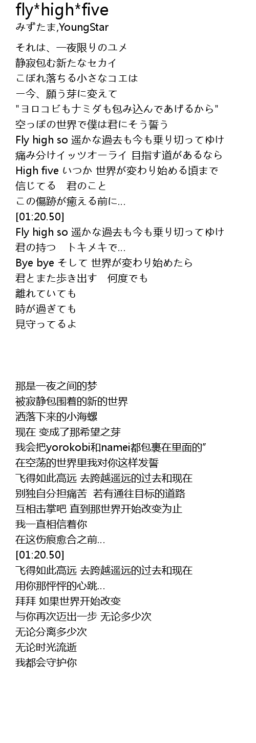 | [01:04.00] | High five いつか 世界が変わり始める頃まで |