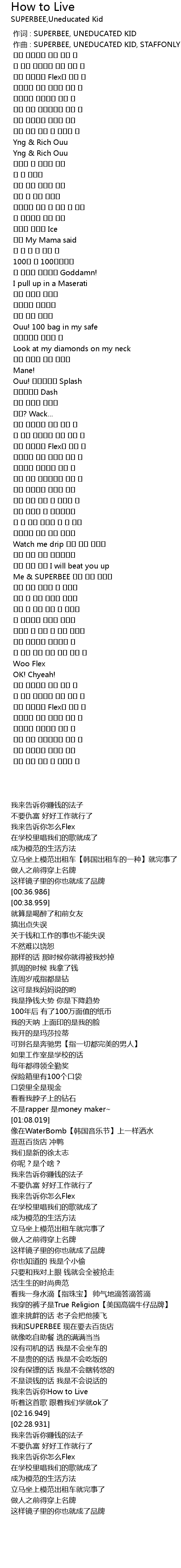 | [00:00.000] | 作词 : SUPERBEE, UNEDUCATED KID |