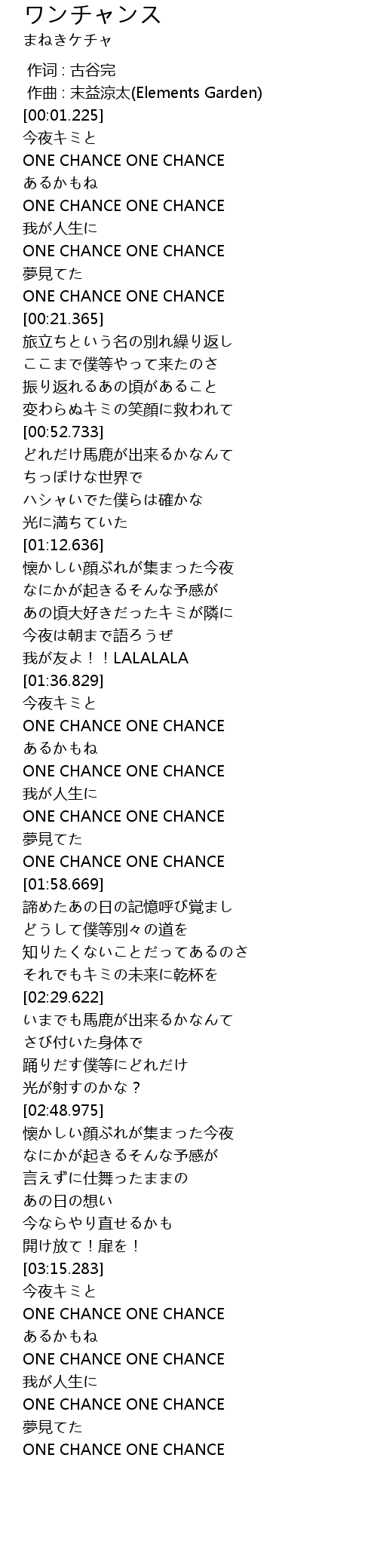 | [03:28.785] | ONE CHANCE ONE CHANCE |